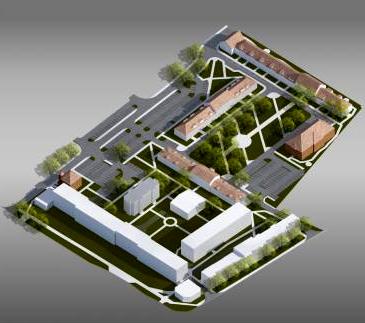 Zabytkowy budyneczek z czerwonej cegły oczywiście pozostać musi. Oznacza to kolejny etap przebudowy układów pieszych, jezdnych i parkingowych. W efekcie zburzone zostaną dwa budynki o barakowym standardzie - Jasielska 1E w pierwszej kolejności, tj. w ciągu najbliższego półtora roku i następnie Wiejska 2D.