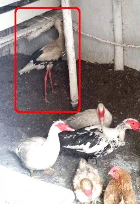 Podczas kontroli warunków bytowych zwierząt w gospodarstwie inspektorzy animals zauważyli wśród kur i kaczek... bociana.